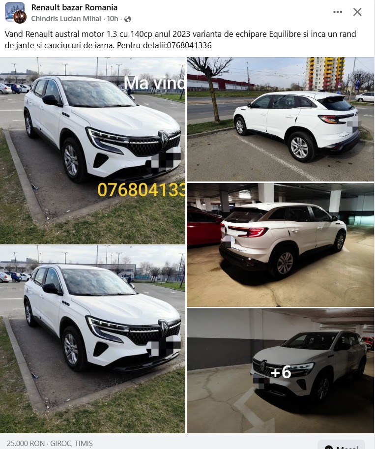 Vand Renault Austral motor 1.3 manual, 140 cp, varianta Equilibre cu 1 dotari suplimentare incarcare wireless si senzori 360. Revizia la zi si inca 2 ani de garantie si inca un rand de jante si cauciucuri de iarna.Detalii la 0768041336